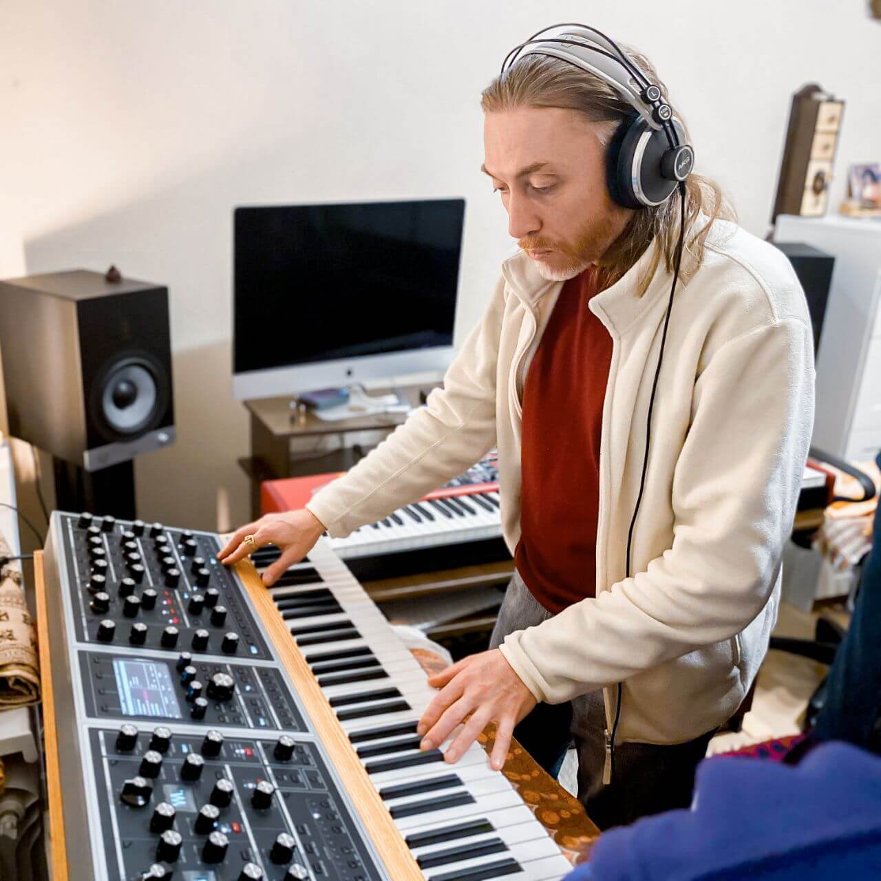Когда я создаю музыку, она сначала звучит внутри. Возникает образ. Вибрация. И только потом я подключаю синтезаторы, современные технологии, живой звук — насколько это возможно. Это как внутренний фильм, который разворачивается в сознании, и я стараюсь передать его концепцию через звук. Каждый звук для меня имеет цвет. И каждый цвет — это форма. Это не образное выражение, а конкретное, реальное восприятие. Много лет назад я создал цветоформы — изображения, соответствующие каждому звуку синтезатора. И когда я смотрю на них сейчас, связь с той вибрацией восстанавливается мгновенно.