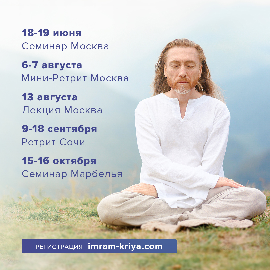 Информация о новых событиях регулярно обновляется на нашем сайте Imram-Kriya.com. Следите за анонсами и регистрируйтесь на мероприятия Имрам Крийя.