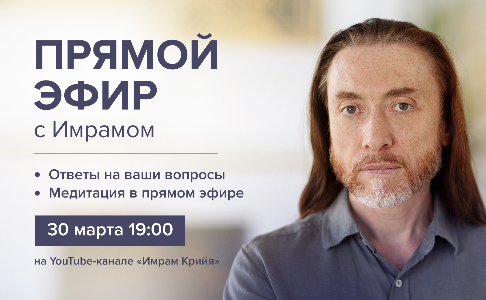 Друзья, уже в эту субботу 30 марта в 19:00 мск на YouTube-канале «Имрам Крийя» состоится большой прямой эфир с Имрамом!